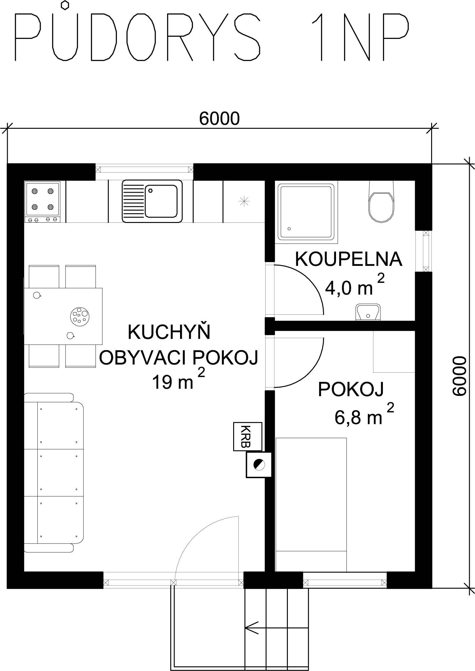 Zahradní domek ve Strážnici. Domek s jednou ložnicí a obývacím pokojem s kuchyní. Celkem 30 m2 užitné plochy.